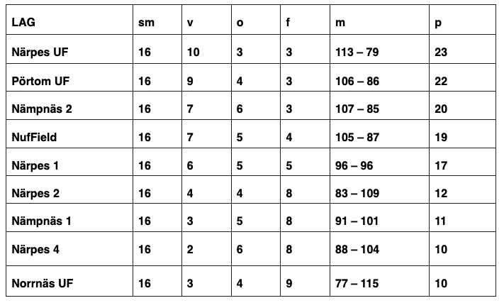 Ringkvalet är avslutat och Närpes UF och Pörtom UF tar sig till final.